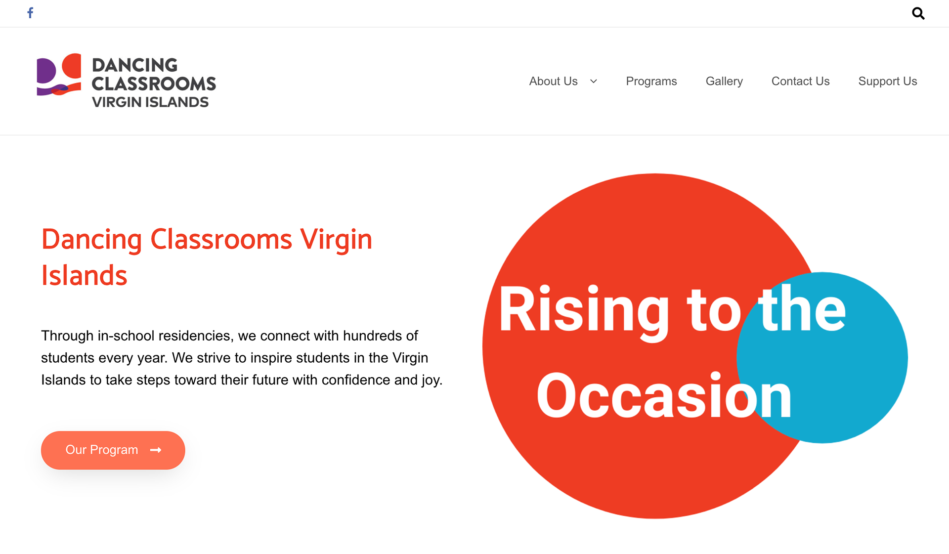 Goal: Design a new website for Dancing Classrooms Virgin Islands, a non-profit organization that offers dance programs to young children