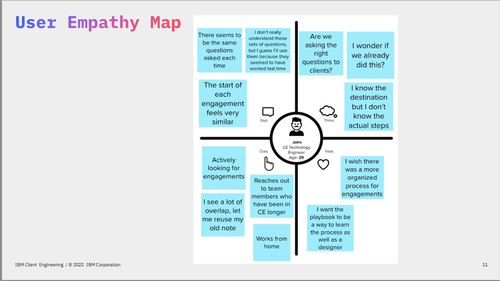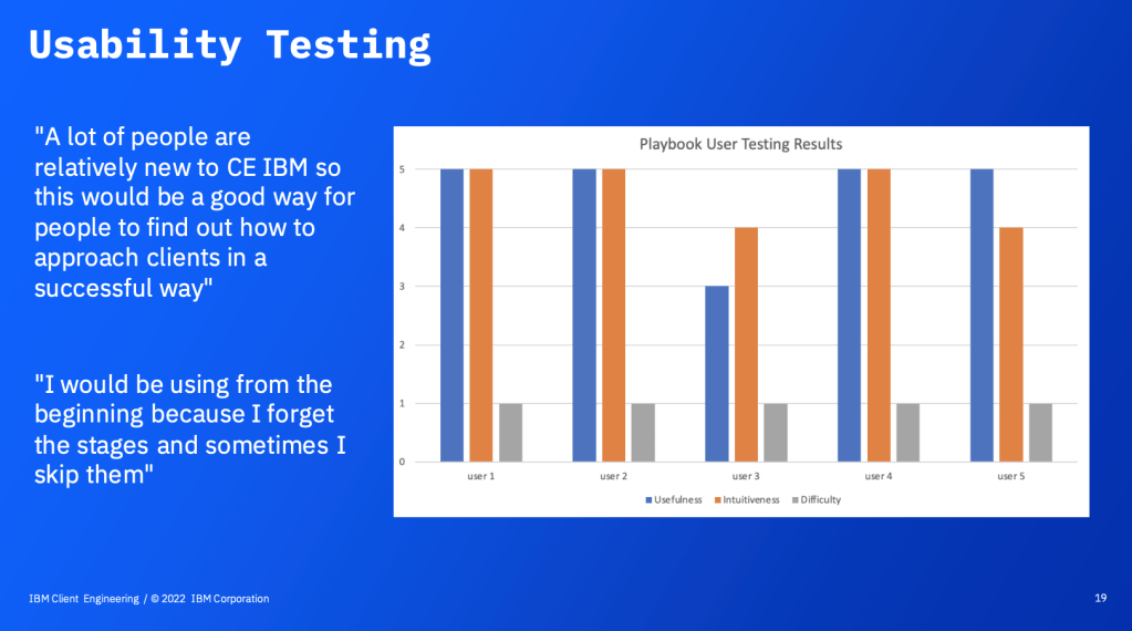 Summary: Created MVP for a playbook, a guide for client engineering teams to use as they go through IBM Enterprise Design Thinking methodologies with clients