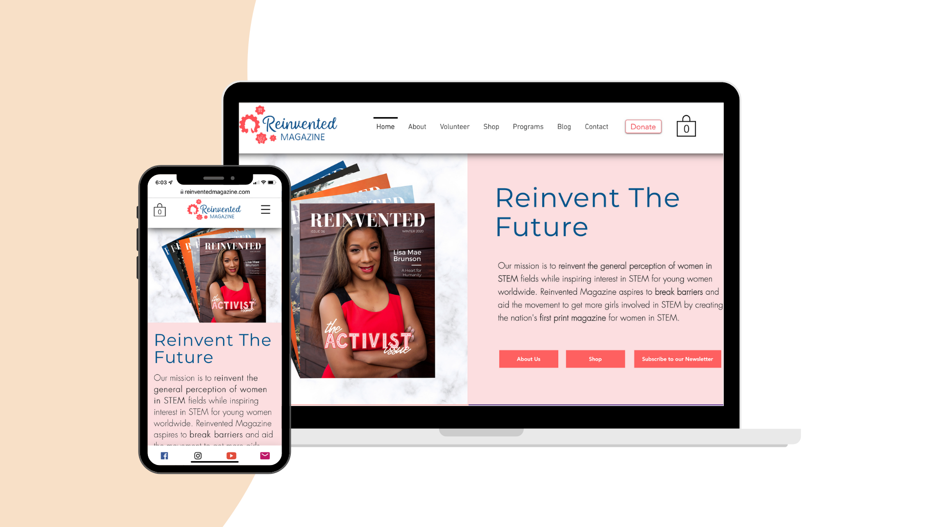 The home page now clearly answers WHO Reinvented Magazine is and what the organization does.