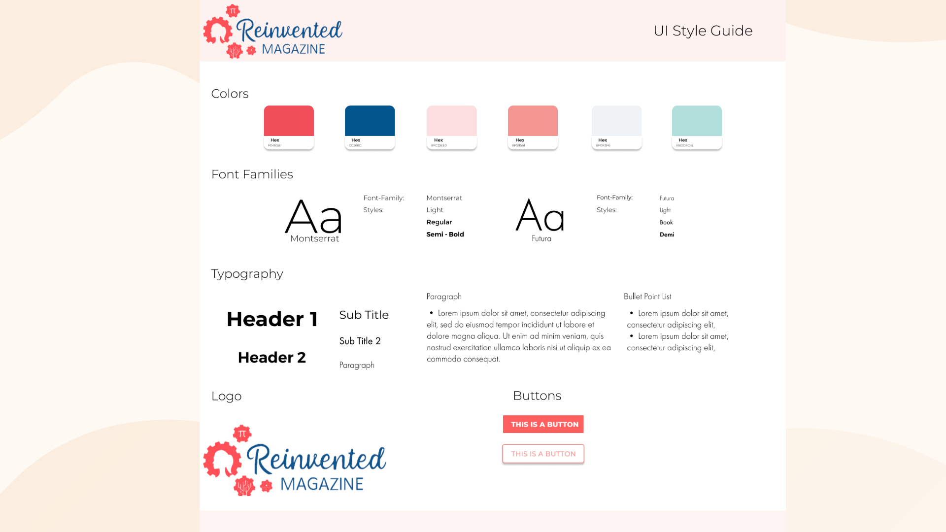 The new website has an updated style guide which is modern and fits Reinvented’s brand with fresh colors and variations of pink.